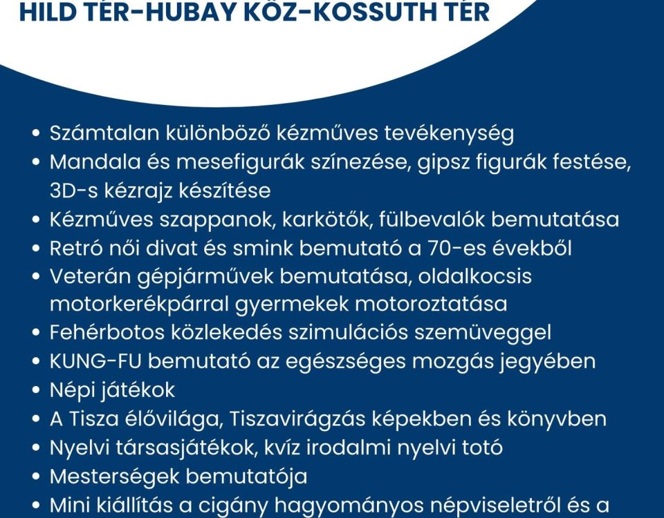 2025.08.28.Civil KavalkádAz alábbi szervezetek várják szeretettel az érdeklődőket:„BRUMM” Közösségi Társadalmi Tevékenységet Végző Szociális Szövetkezet, „Emberkék Az Emberért” Egyesület, „Esélyt a hátrányos helyzetű embereknek” Alapítvány, AURIGA […]